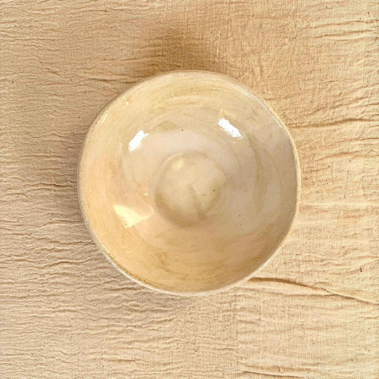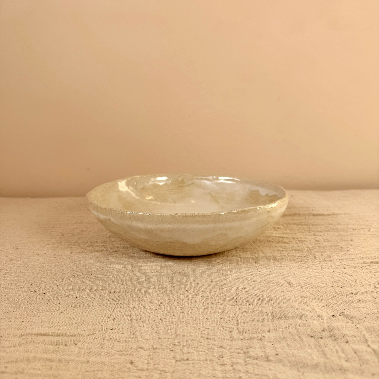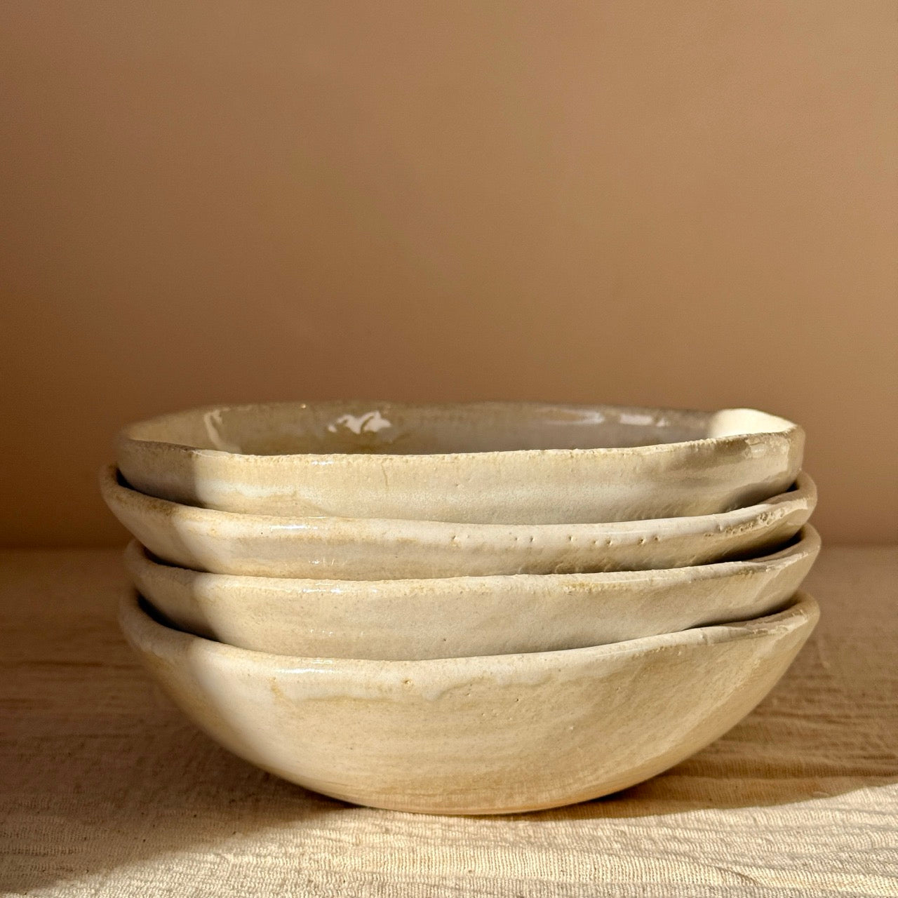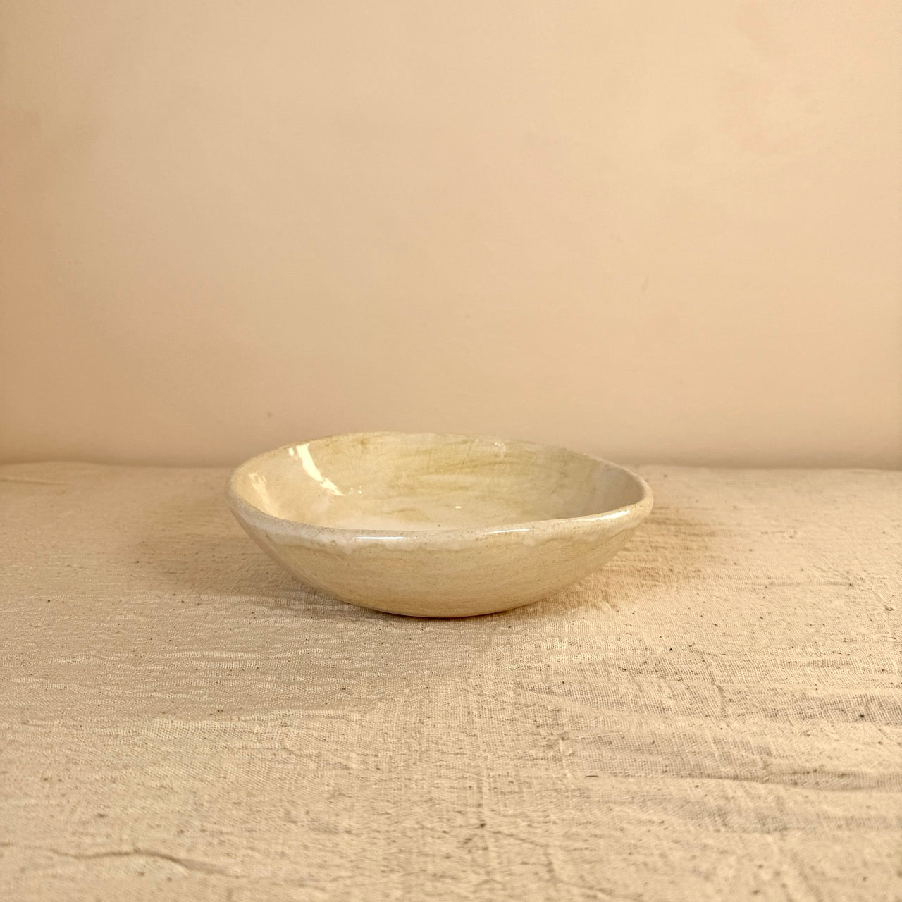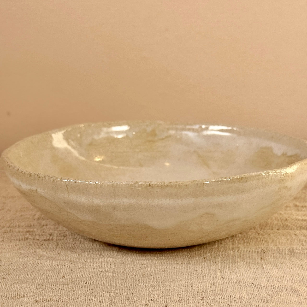 Bol de cerámica hecho a mano por un ceramista en Mallorca con un acabado en tonos beige que combina en cualquier espacio. Al ser una pieza hecha a mano, su forma orgánica es irregular y no hay dos boles iguales. Esta pieza es ideal como bol para servir aperitivos en una mesa de comedor o cocina así como centro de mesa o como pieza decorativa en tu salón.