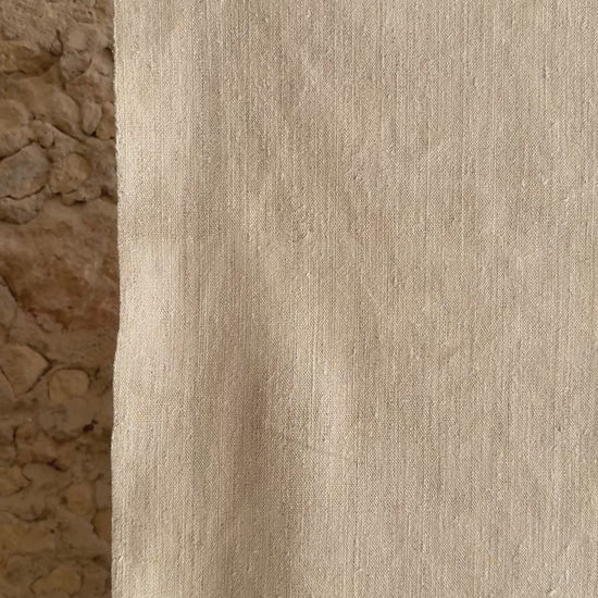 Lino vintage auténtico en un precioso tono beige, ideal como mantel para el comedor o como colcha para una cama individual. Su textura envejecida aporta una caída natural con un aire rústico y elegante. Nosotras lo combinamos con cualquiera de nuestros cojines de lino.