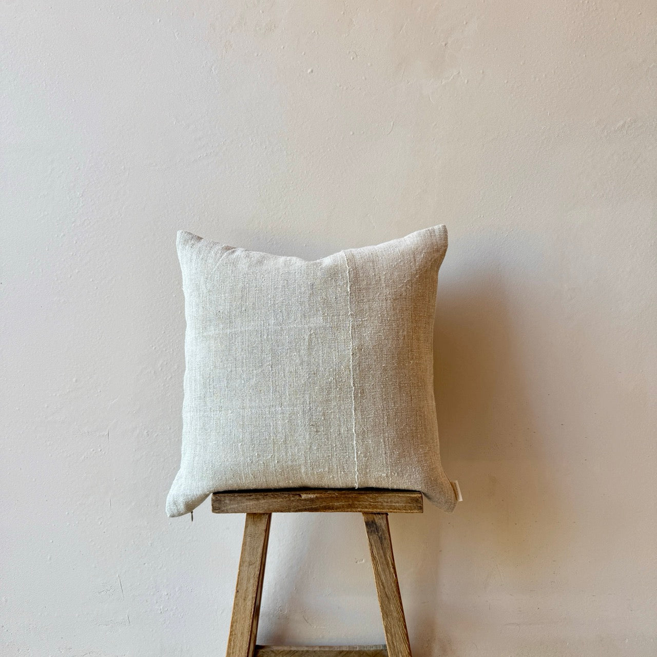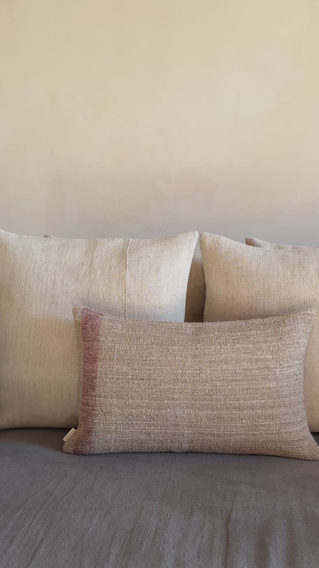 Cojín de lino vintage hecho a mano por una fundación sin ánimo de lucro que favorece la inserción laboral a personas con capacidades diferentes. Gracias a la naturaleza artesanal de este cojín, no hay dos iguales, lo que los convierte en piezas verdaderamente únicas.