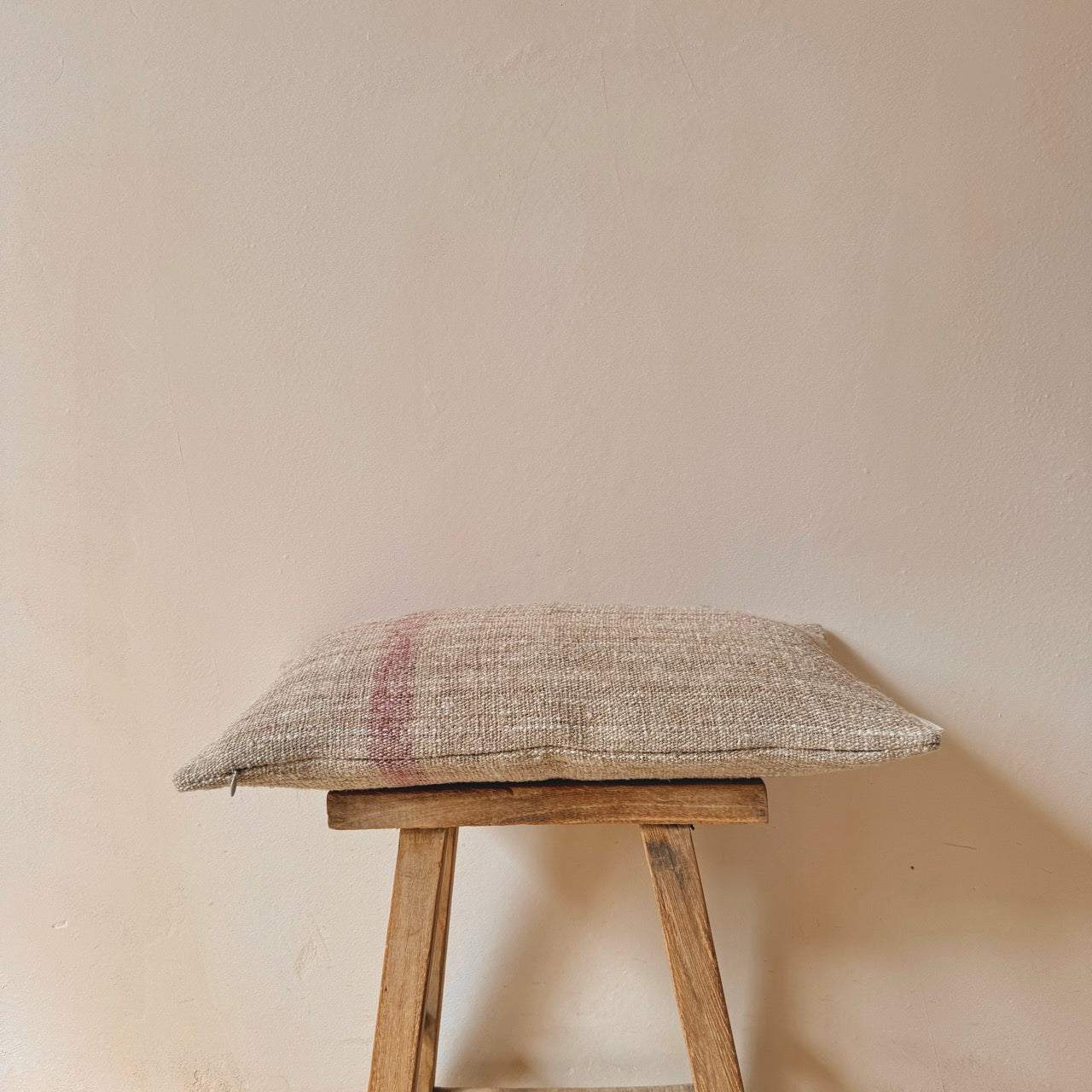 Cojín de lino vintage hecho a mano por una fundación sin ánimo de lucro que favorece la inserción laboral a personas con capacidades diferentes. Gracias a la naturaleza artesanal de este cojín, no hay dos iguales, lo que los convierte en piezas verdaderamente únicas.