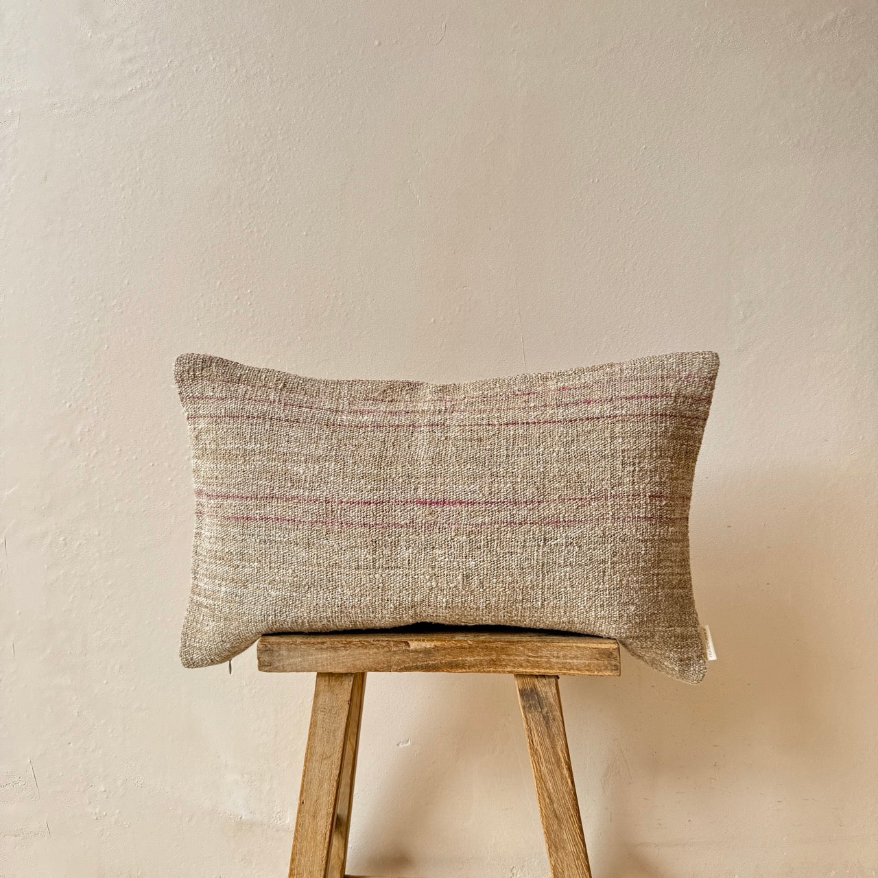 Cojín de lino vintage hecho a mano por una fundación sin ánimo de lucro que favorece la inserción laboral a personas con capacidades diferentes. Gracias a la naturaleza artesanal de este cojín, no hay dos iguales, lo que los convierte en piezas verdaderamente únicas.