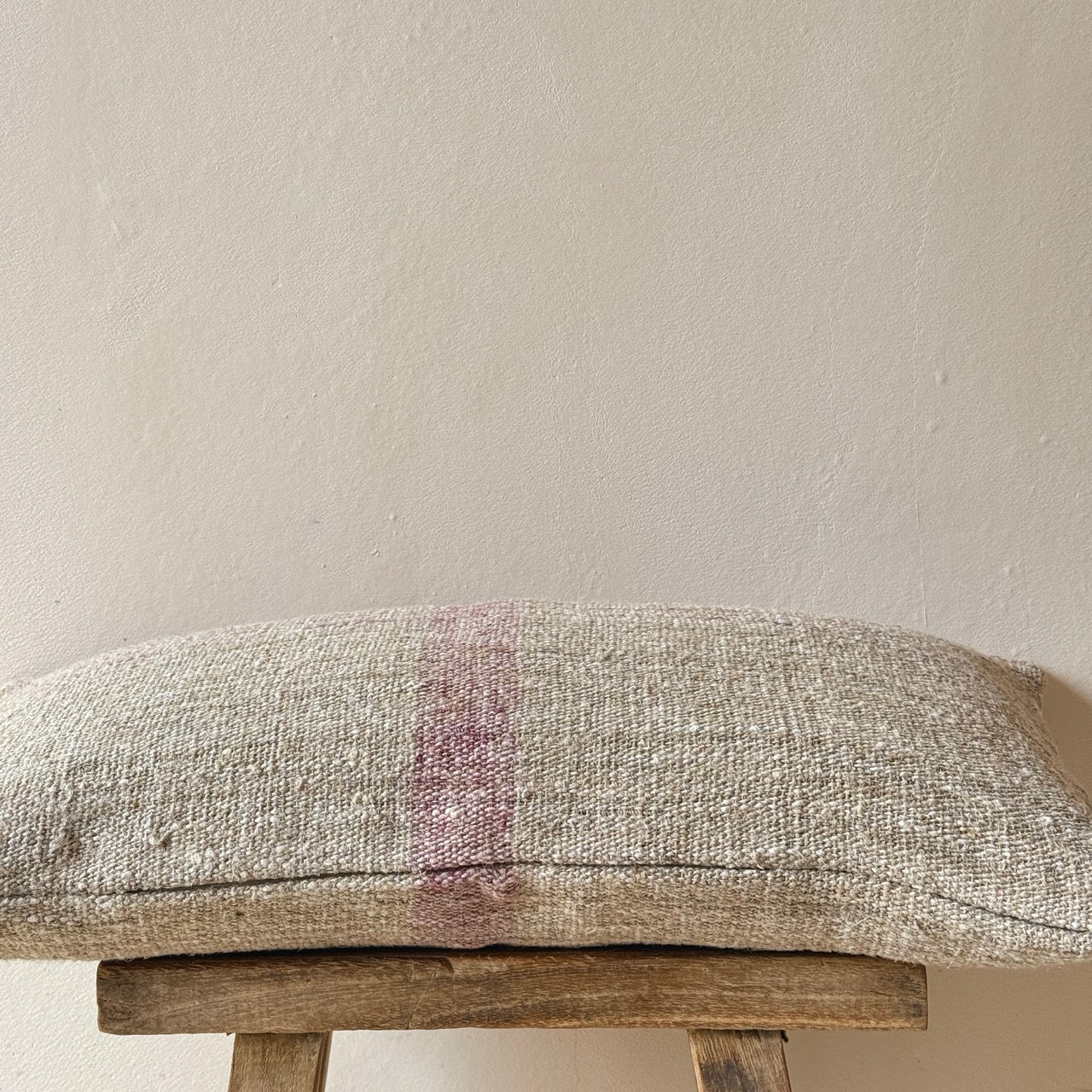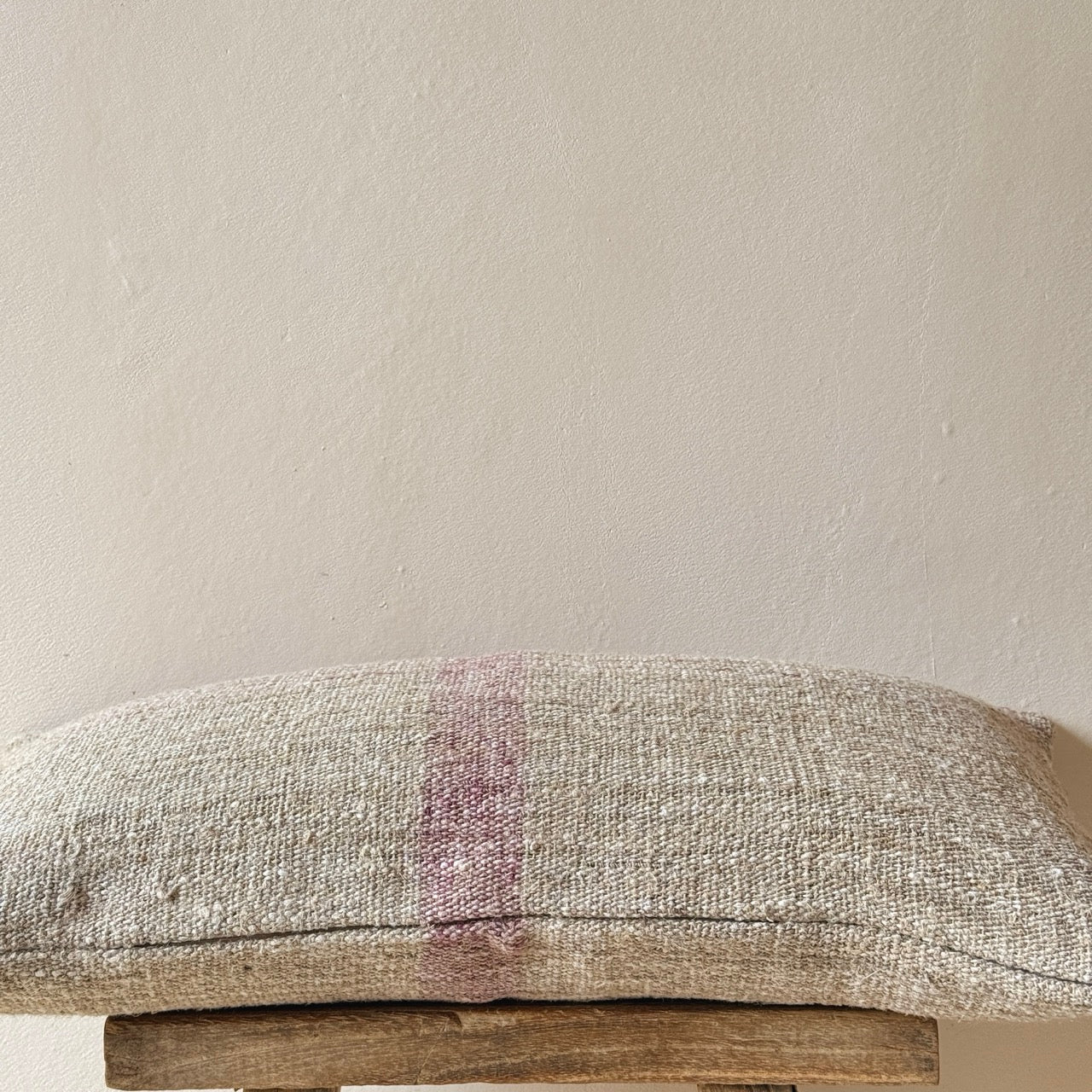 Cojín de lino vintage hecho a mano por una fundación sin ánimo de lucro que favorece la inserción laboral a personas con capacidades diferentes. Gracias a la naturaleza artesanal de este cojín, no hay dos iguales, lo que los convierte en piezas verdaderamente únicas.
