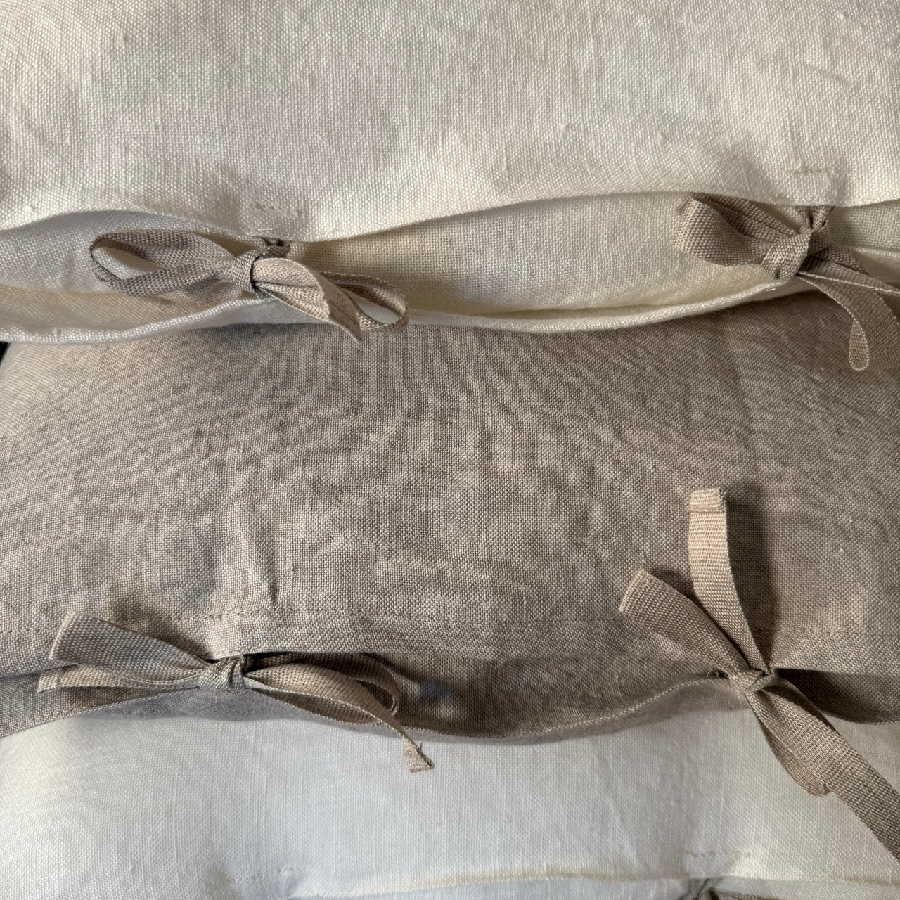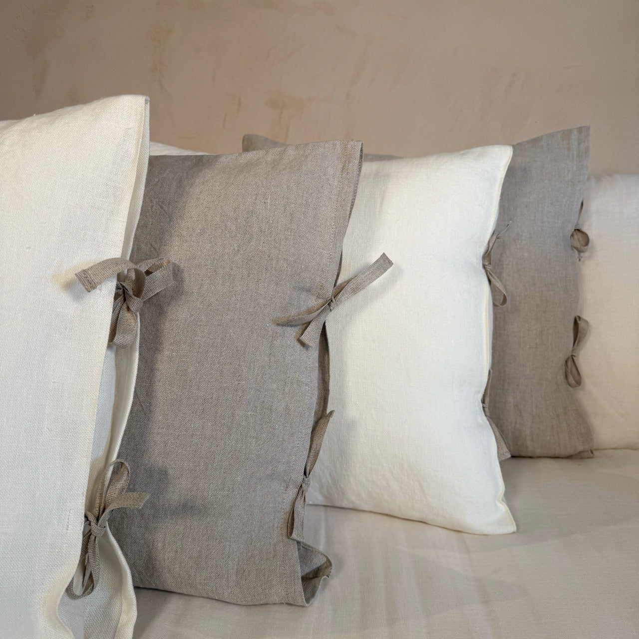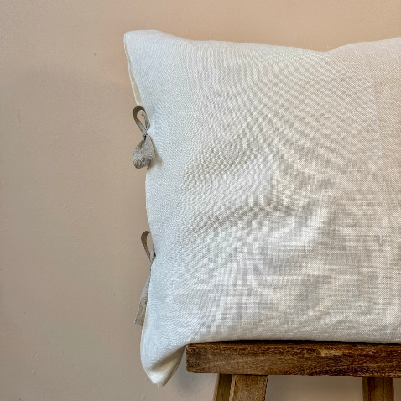 FUNDA DE COJÍN LINO BLANCO CON LAZOS 50x50