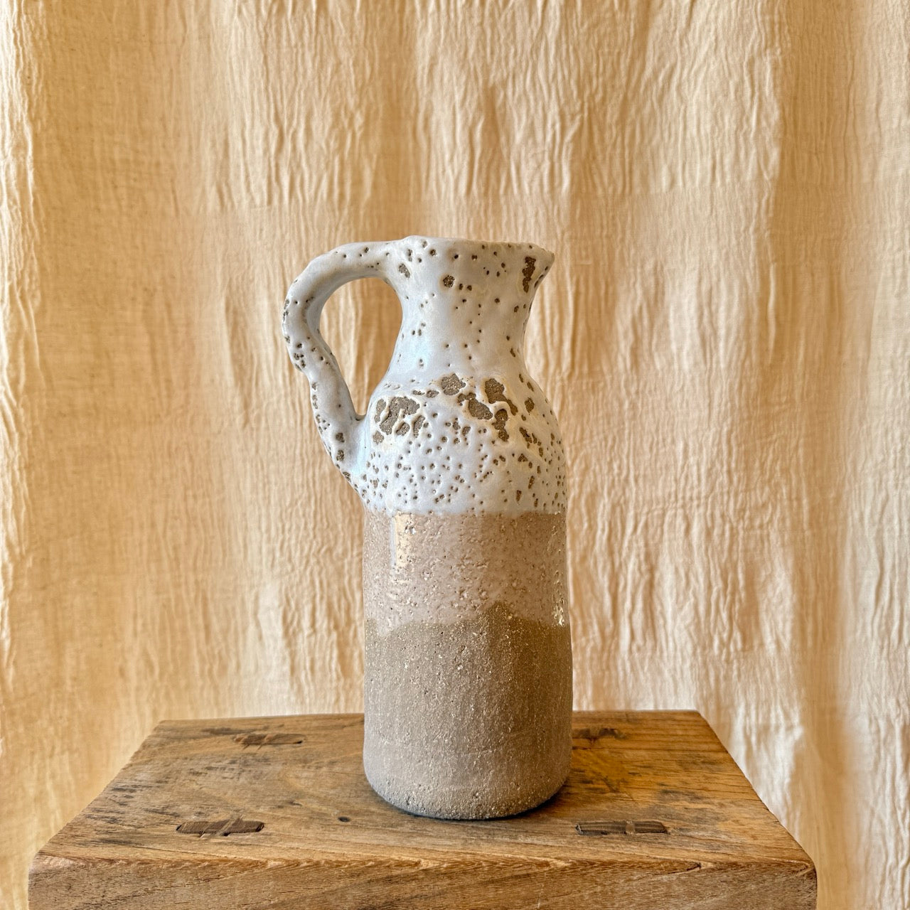 Preciosa jarra de cerámica hecha a mano. Ideal para decorar por sí sola o con unas flores secas. Su combinación de colores terrosos y la mezcla de texturas hace que esta pieza sea única.