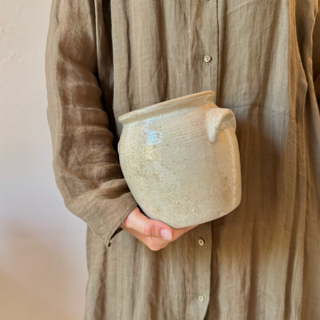Nuestros objetos son piezas únicas con historia. Pueden presentar variaciones en el color, la textura o pequeñas marcas propias del paso del tiempo. Estas huellas no son defectos, sino parte de su carácter y del encanto que las hace únicas. Aunque las piezas esmaltadas suelen considerarse aptas para contener agua, recomendamos utilizar un recipiente interno adicional para colocar tallos frescos.