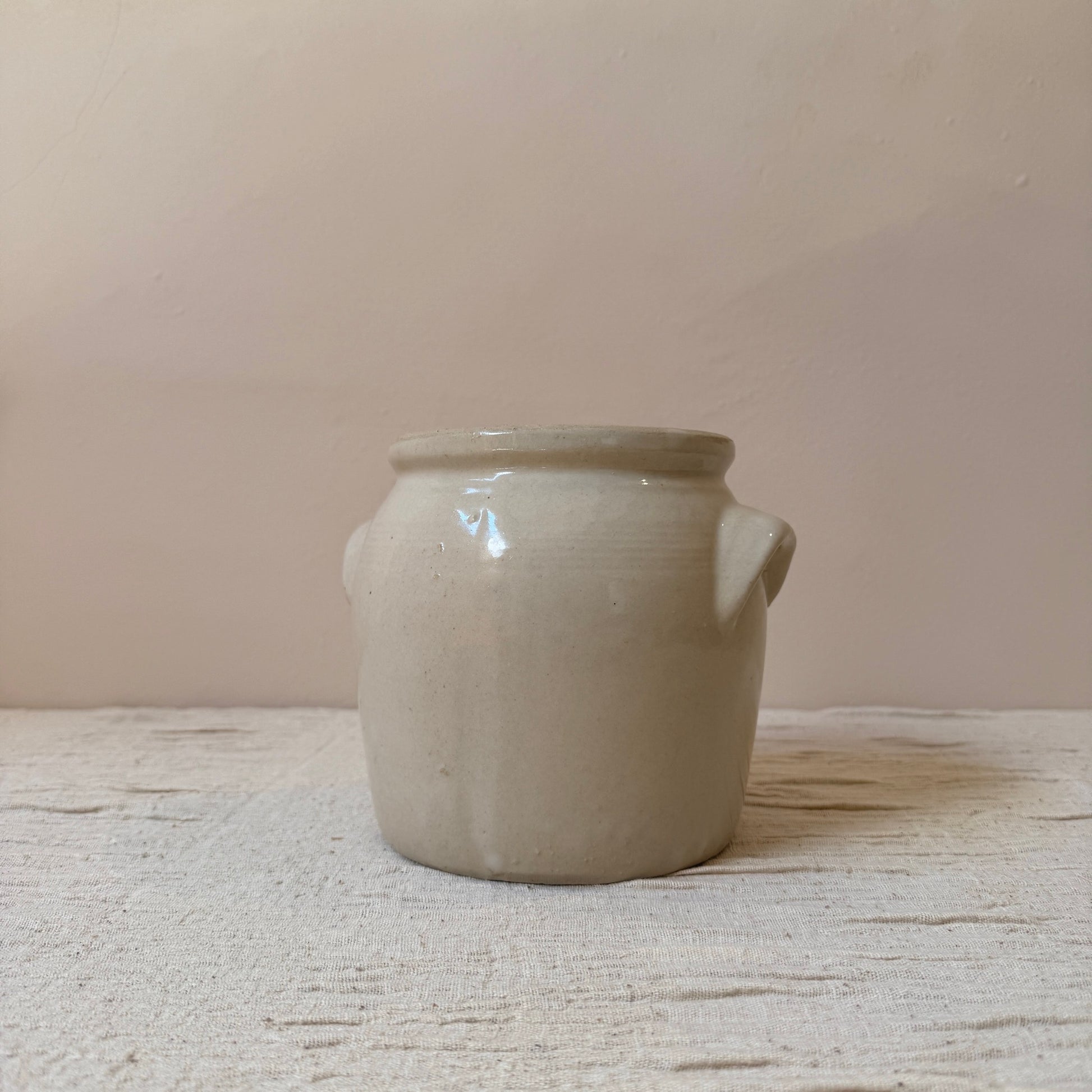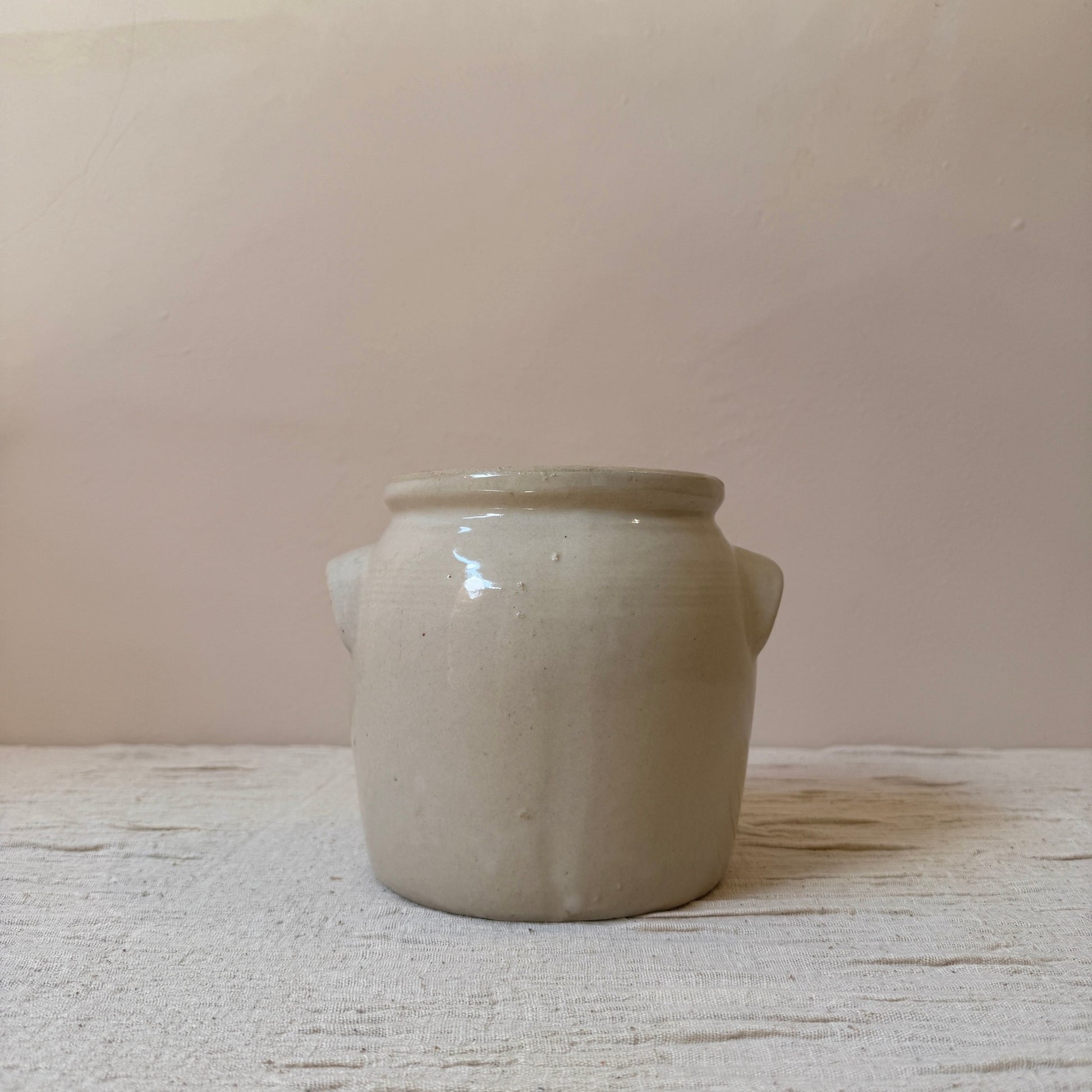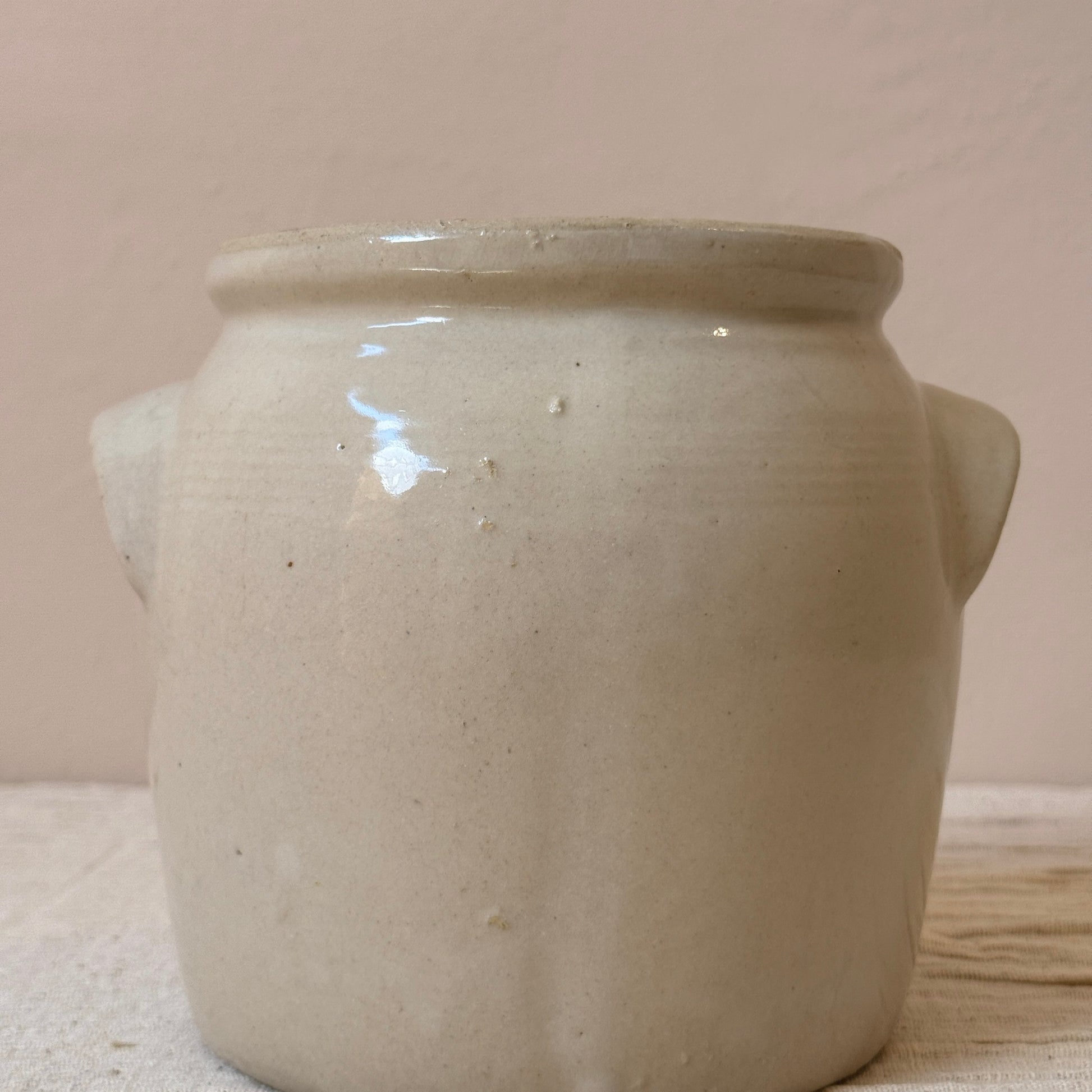 Jarrón de cerámica antiguo francés del siglo XIX. Originalmente se usaban para conservar alimentos en la campiña francesa. Son ideales tanto una pieza sola como la mezcla de varios tamaños y colores juntos. Perfecto para usar como jarrón con flores, para poner los utensilios en la cocina o simplemente como pieza decorativa.