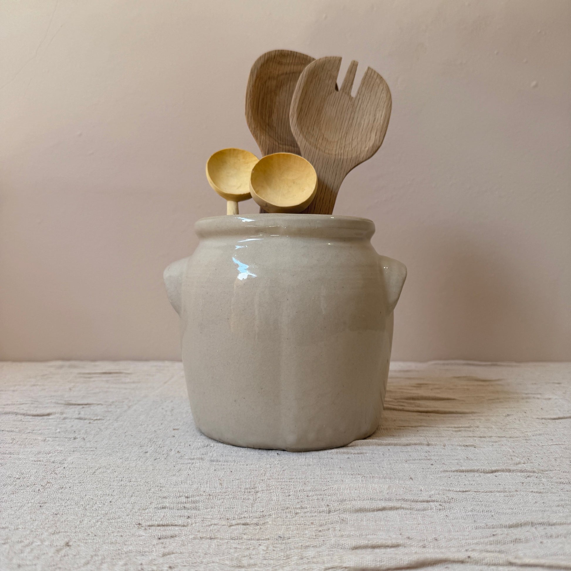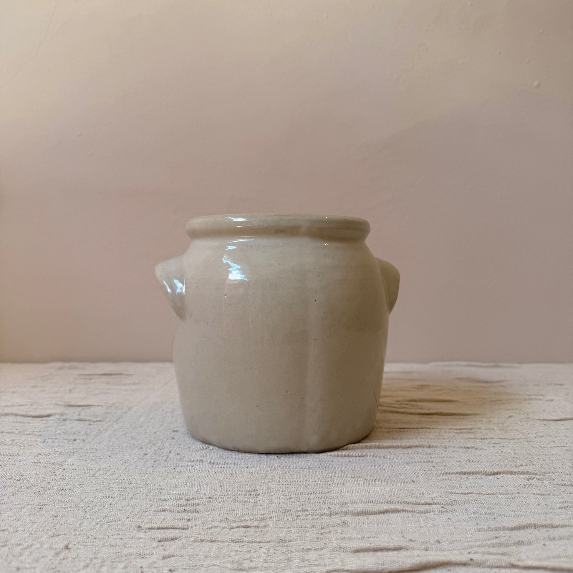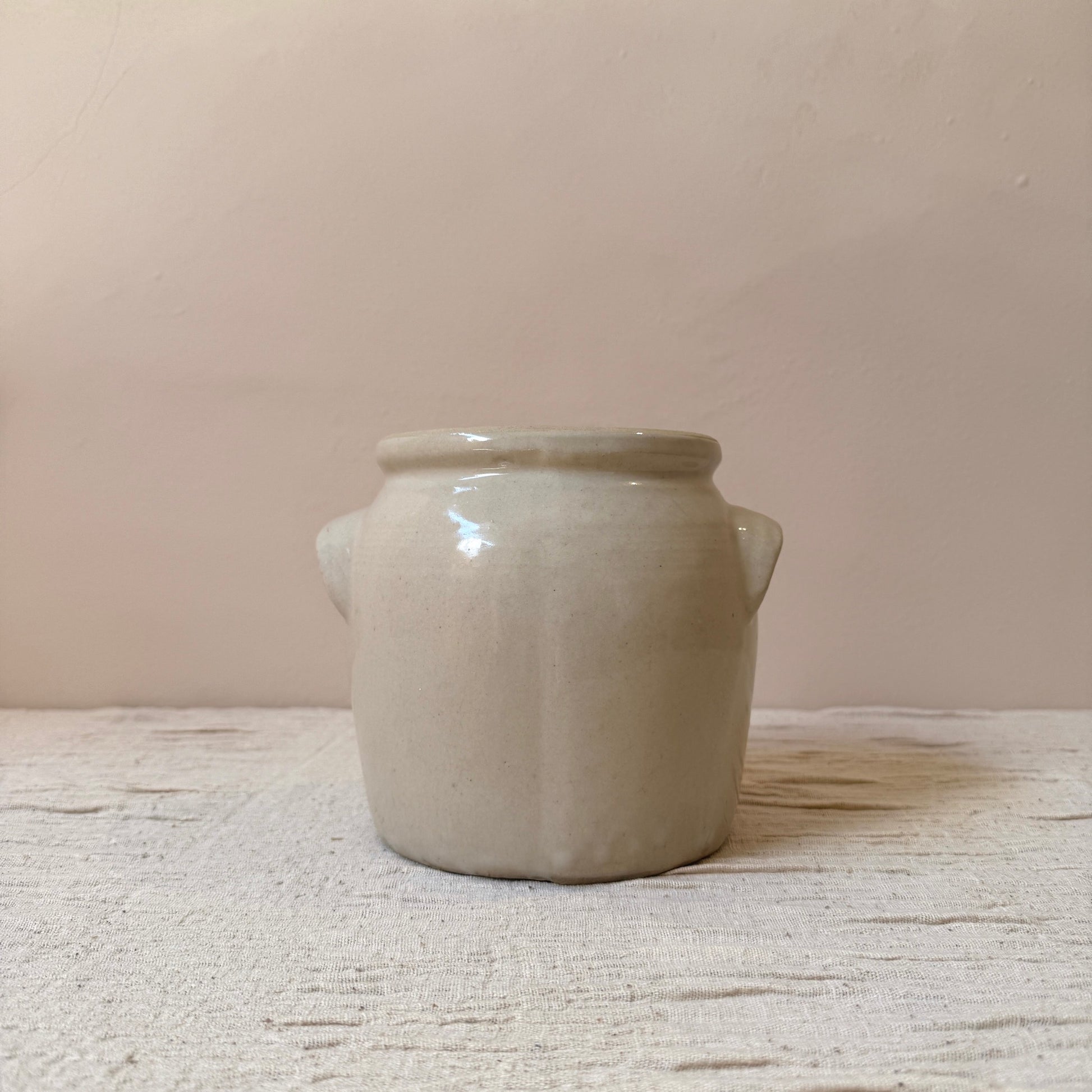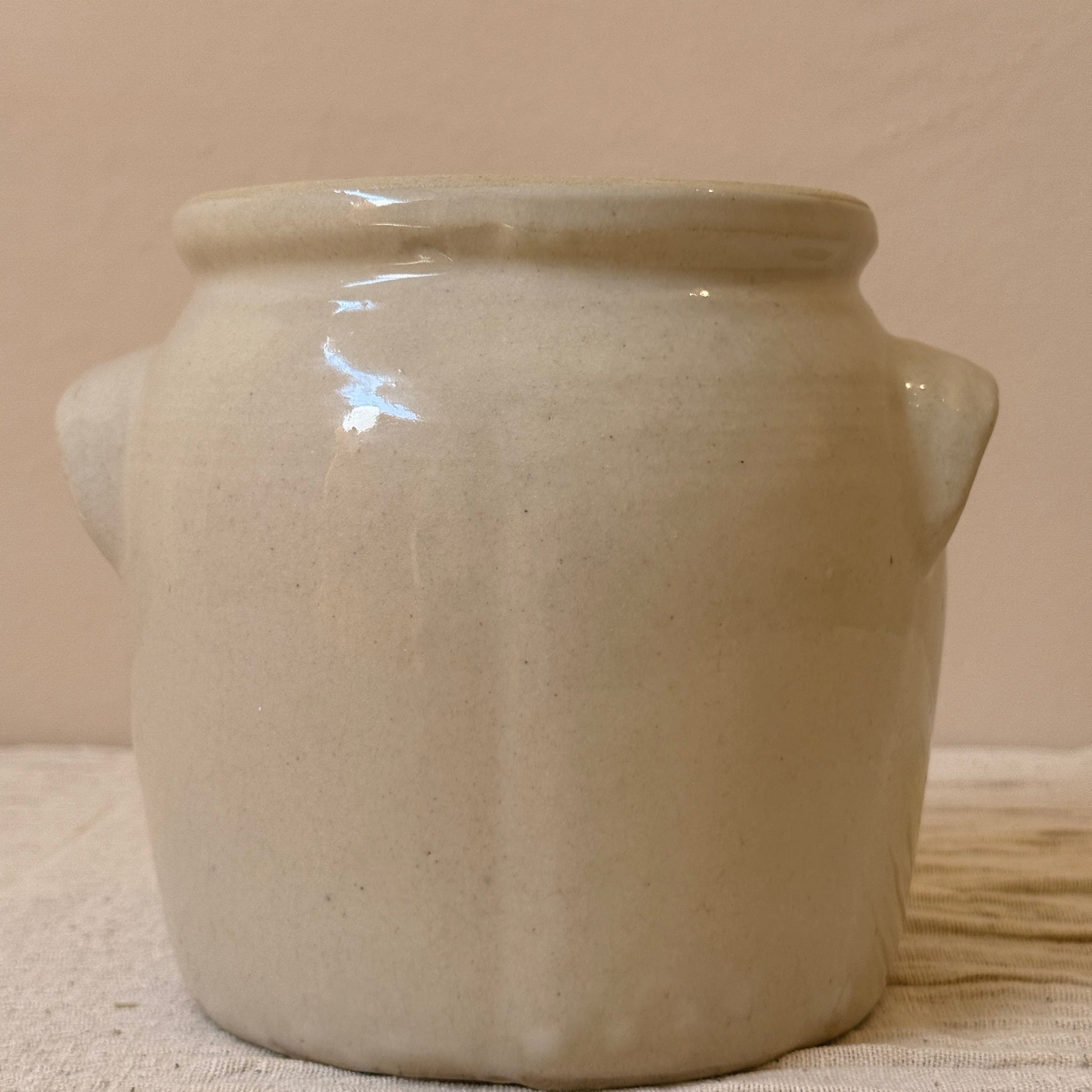 Jarrón de cerámica antiguo francés del siglo XIX. Originalmente se usaban para conservar alimentos en la campiña francesa. Son ideales tanto una pieza sola como la mezcla de varios tamaños y colores juntos. Perfecto para usar como jarrón con flores, para poner los utensilios en la cocina o simplemente como pieza decorativa.