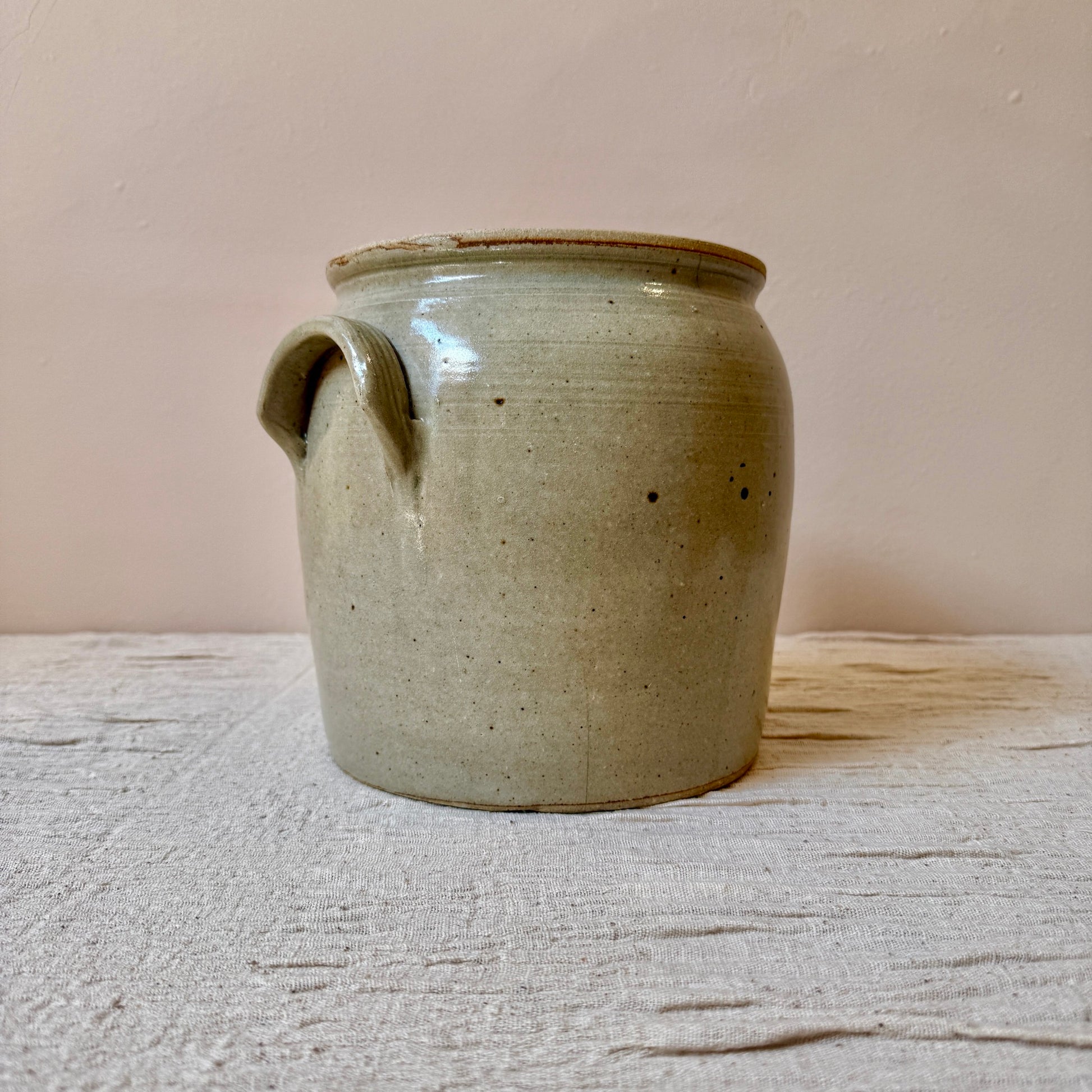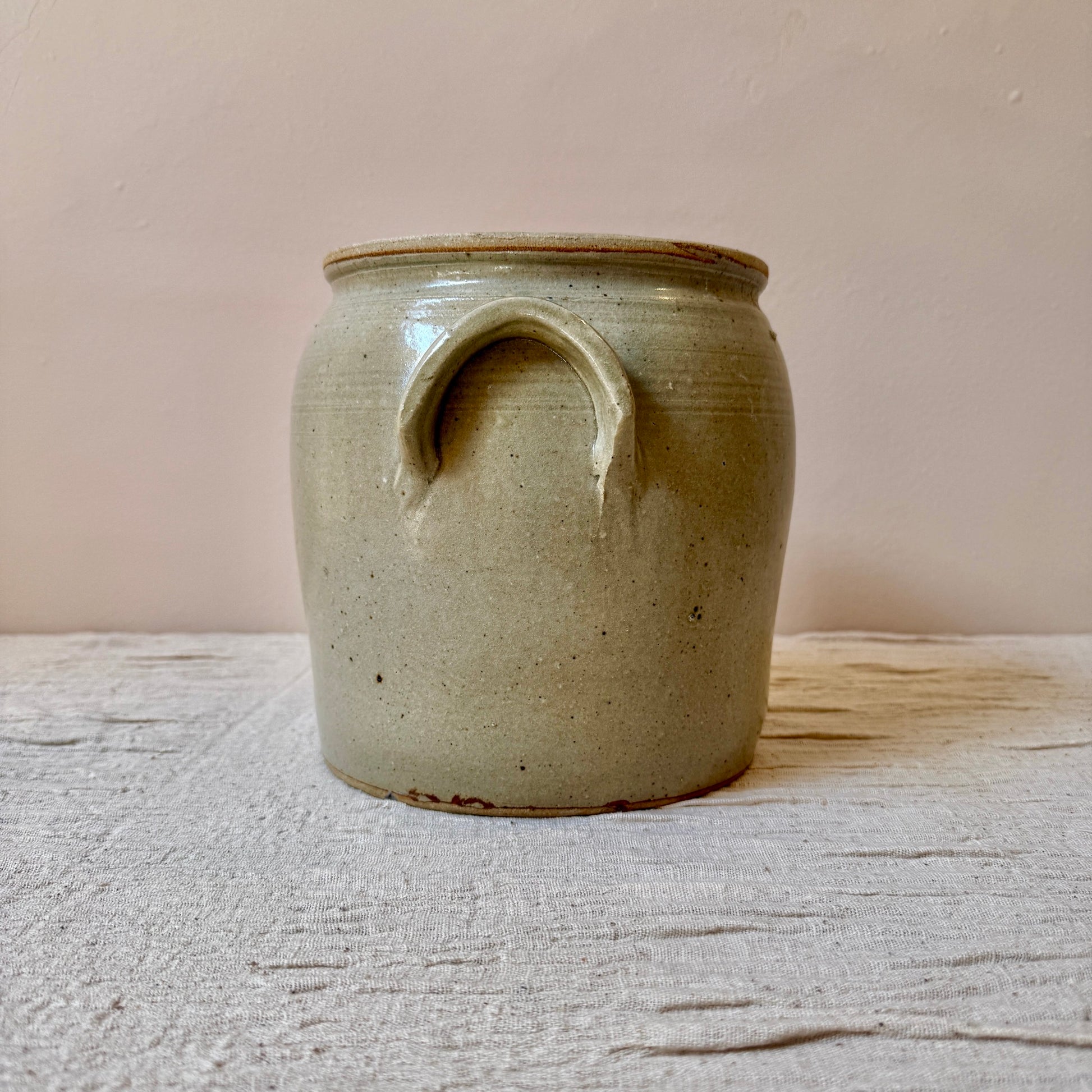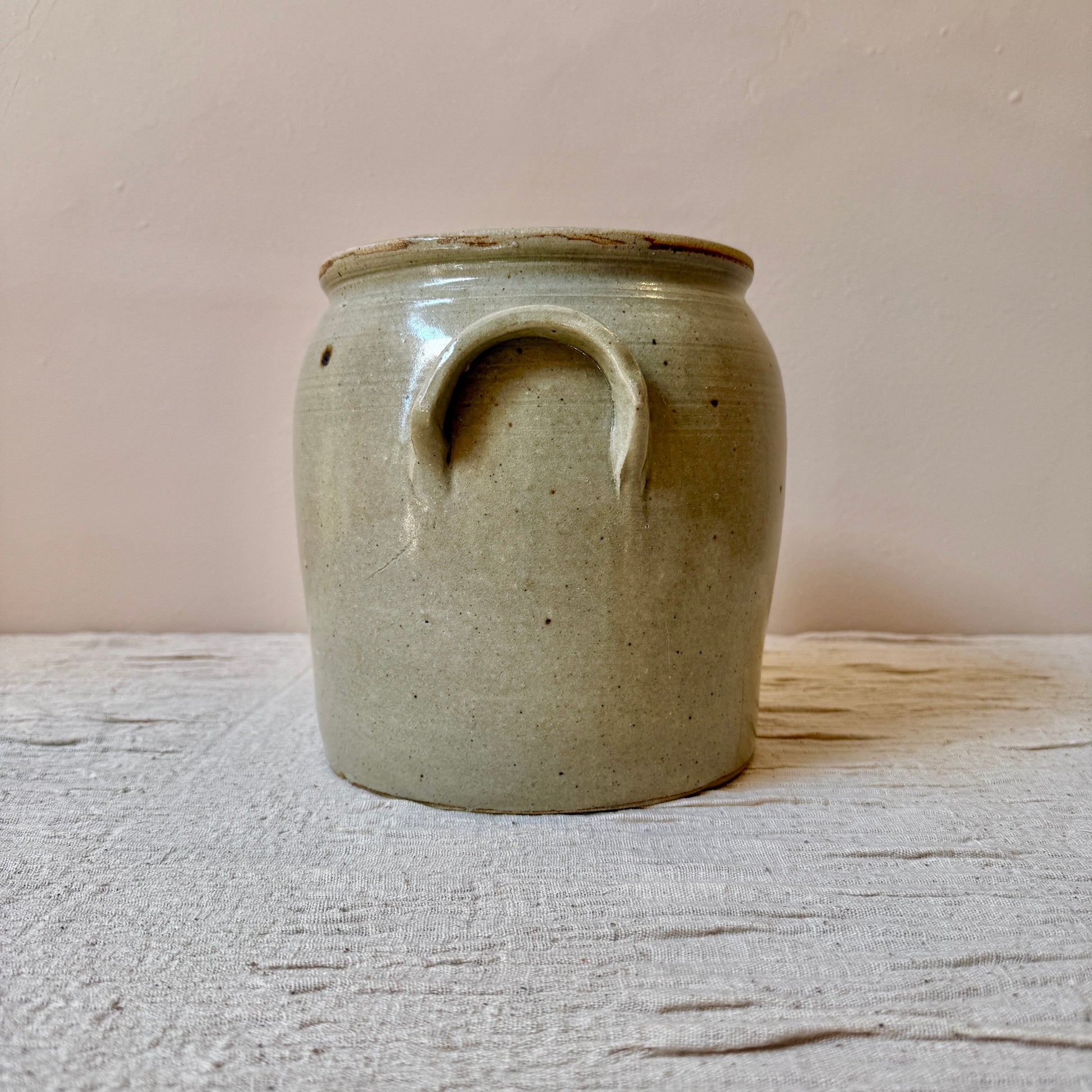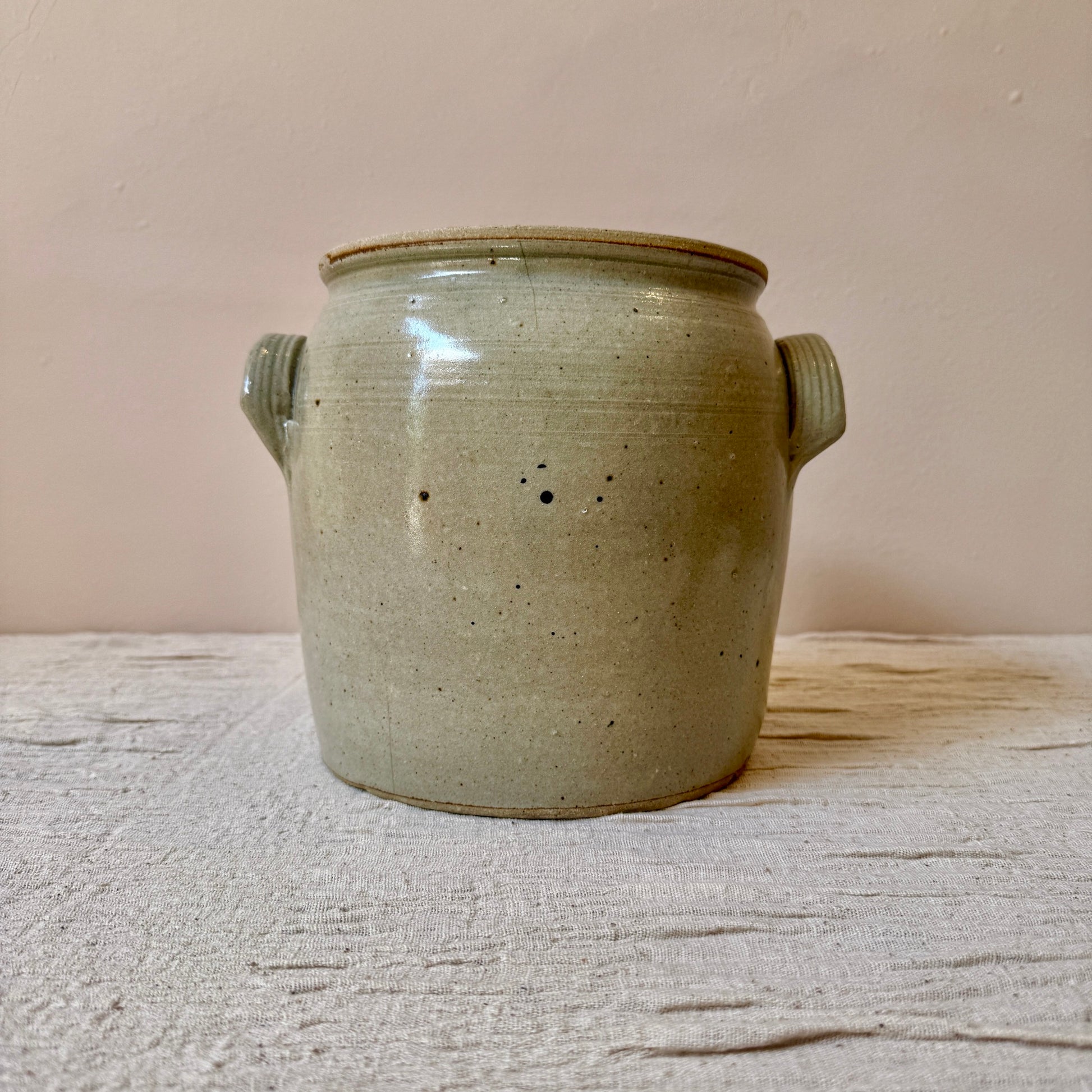 Jarrón de cerámica antiguo francés del siglo XIX. Originalmente se usaban para conservar alimentos en la campiña francesa. Son ideales tanto una pieza sola como la mezcla de varios tamaños y colores juntos. Perfecto para usar como jarrón con flores, para poner los utensilios en la cocina o simplemente como pieza decorativa. Este en concreto es sin duda uno de nuestros favoritos, tiene estas manchas como pecas que lo hacen muy especial.
