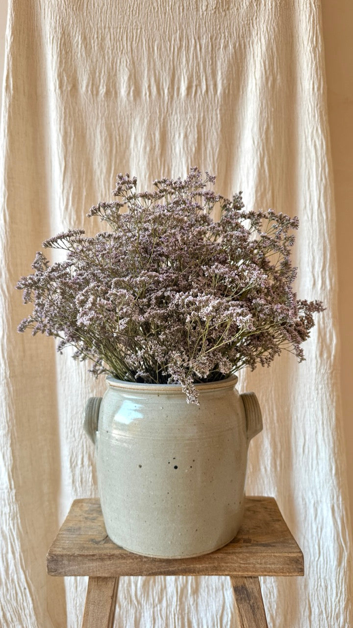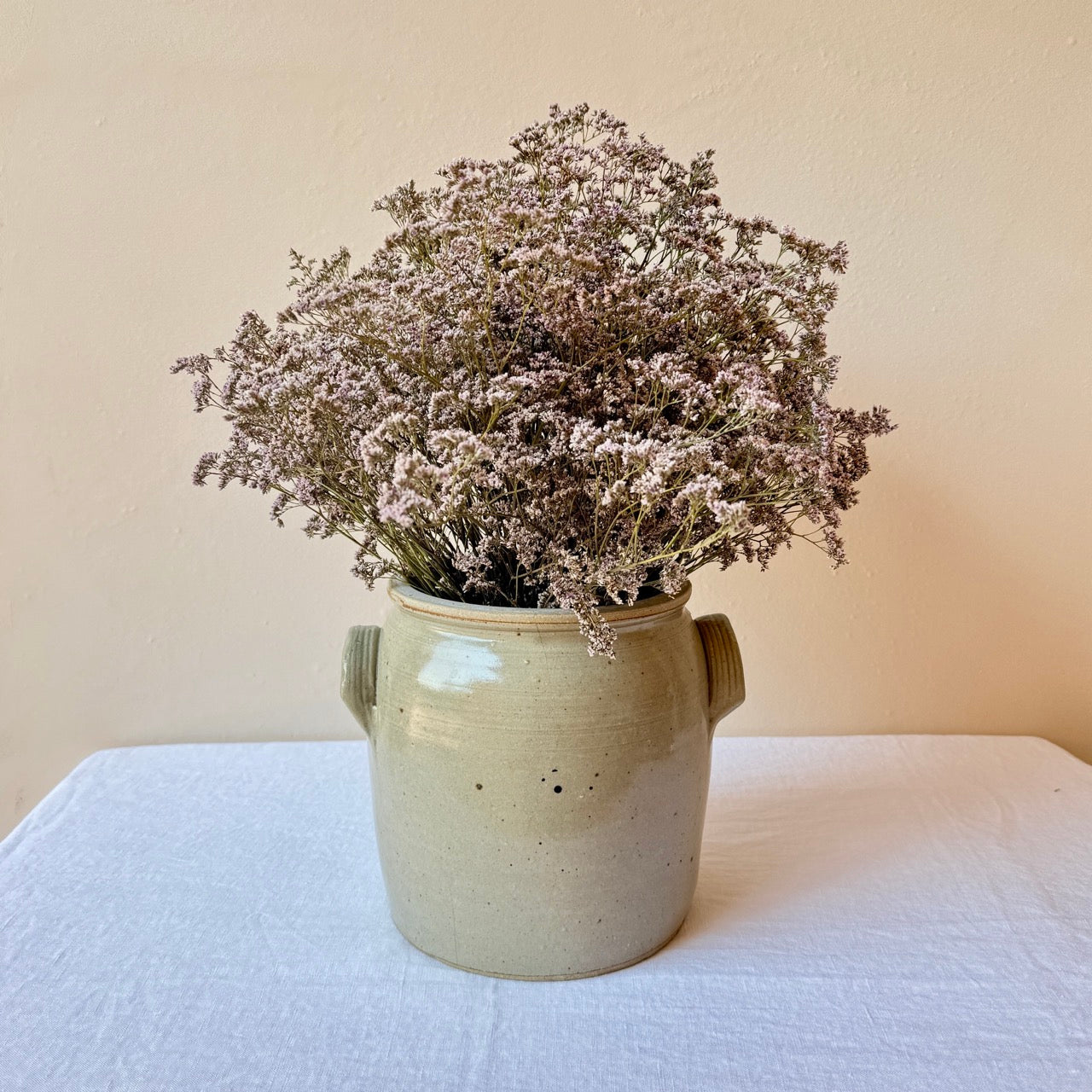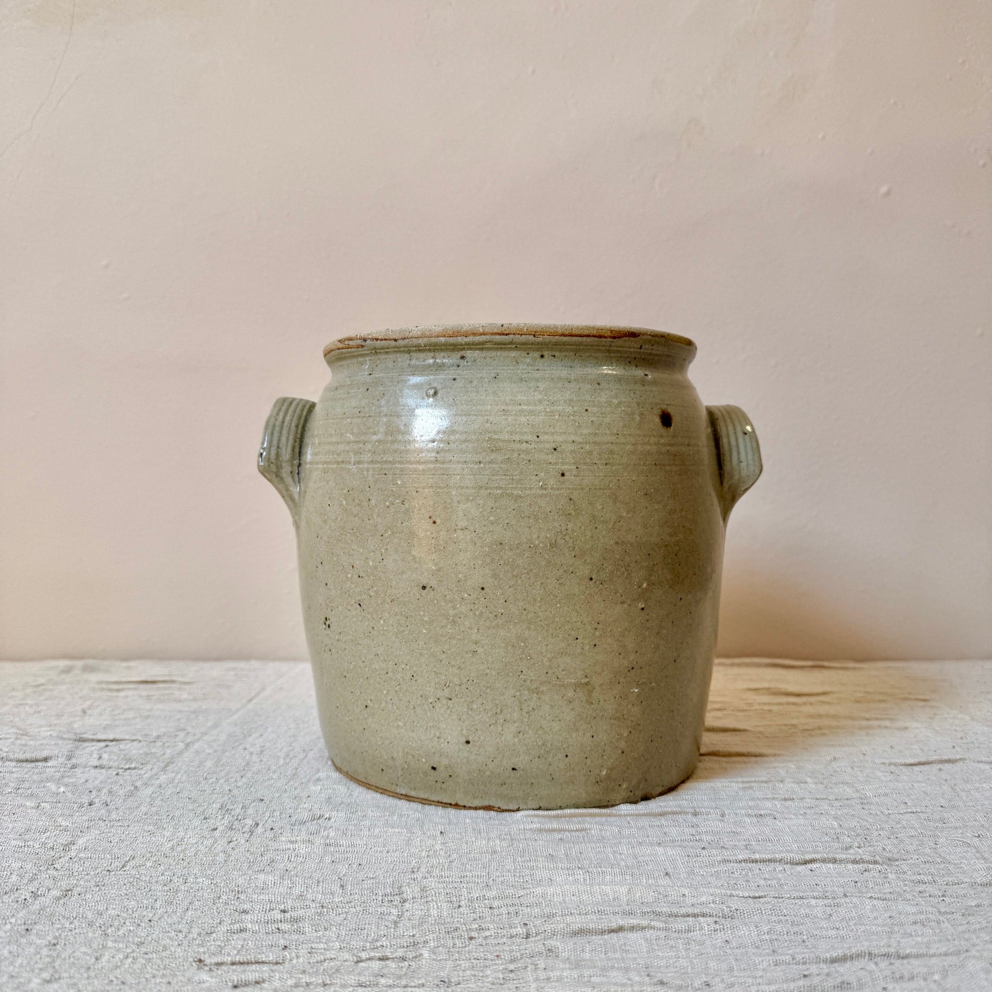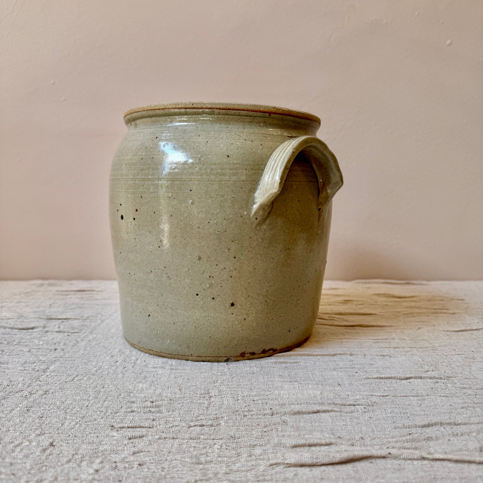 Jarrón de cerámica antiguo francés del siglo XIX. Originalmente se usaban para conservar alimentos en la campiña francesa. Son ideales tanto una pieza sola como la mezcla de varios tamaños y colores juntos. Perfecto para usar como jarrón con flores, para poner los utensilios en la cocina o simplemente como pieza decorativa. Este en concreto es sin duda uno de nuestros favoritos, tiene estas manchas como pecas que lo hacen muy especial.