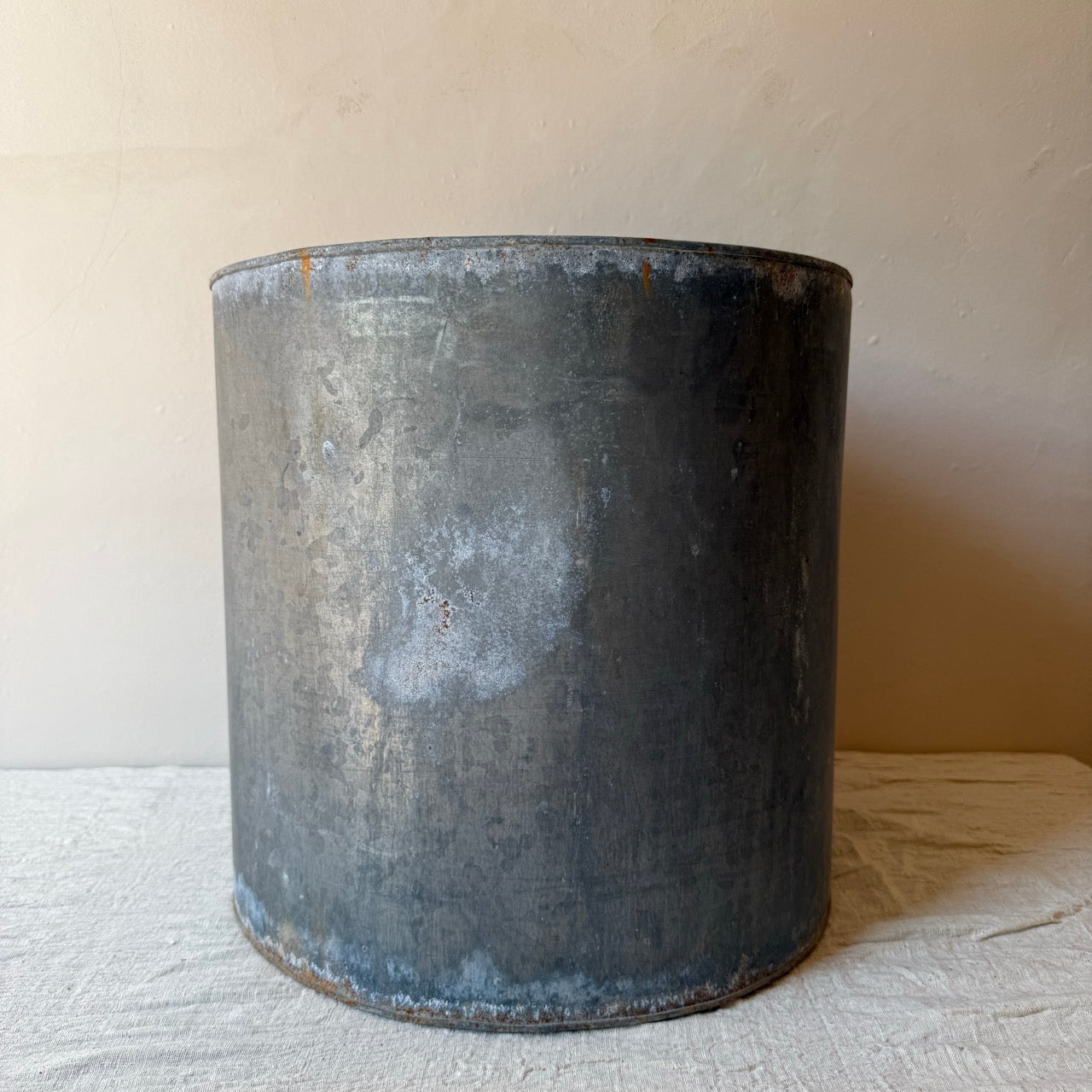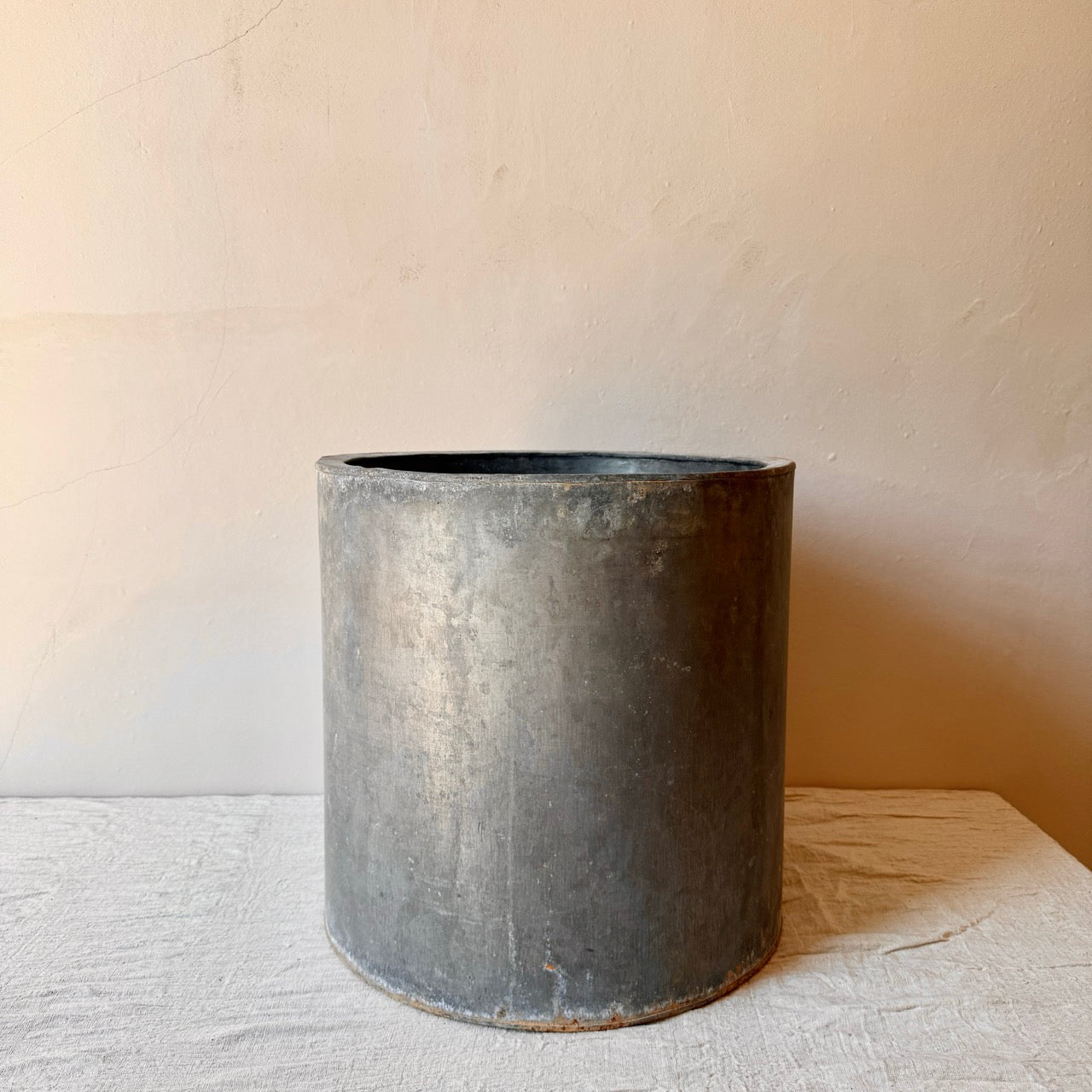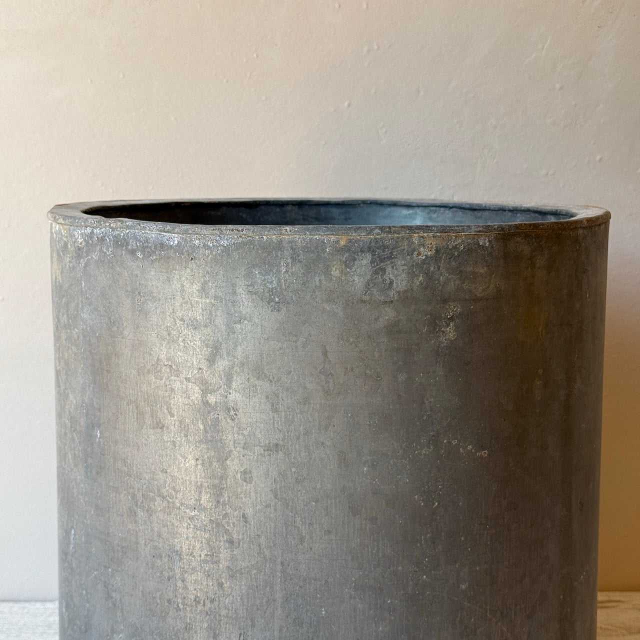 Antigua maceta de metal para planta. Ideal para decorar en un recibidor o en una terraza o jardín. Combínala con su tamaño pequeño.