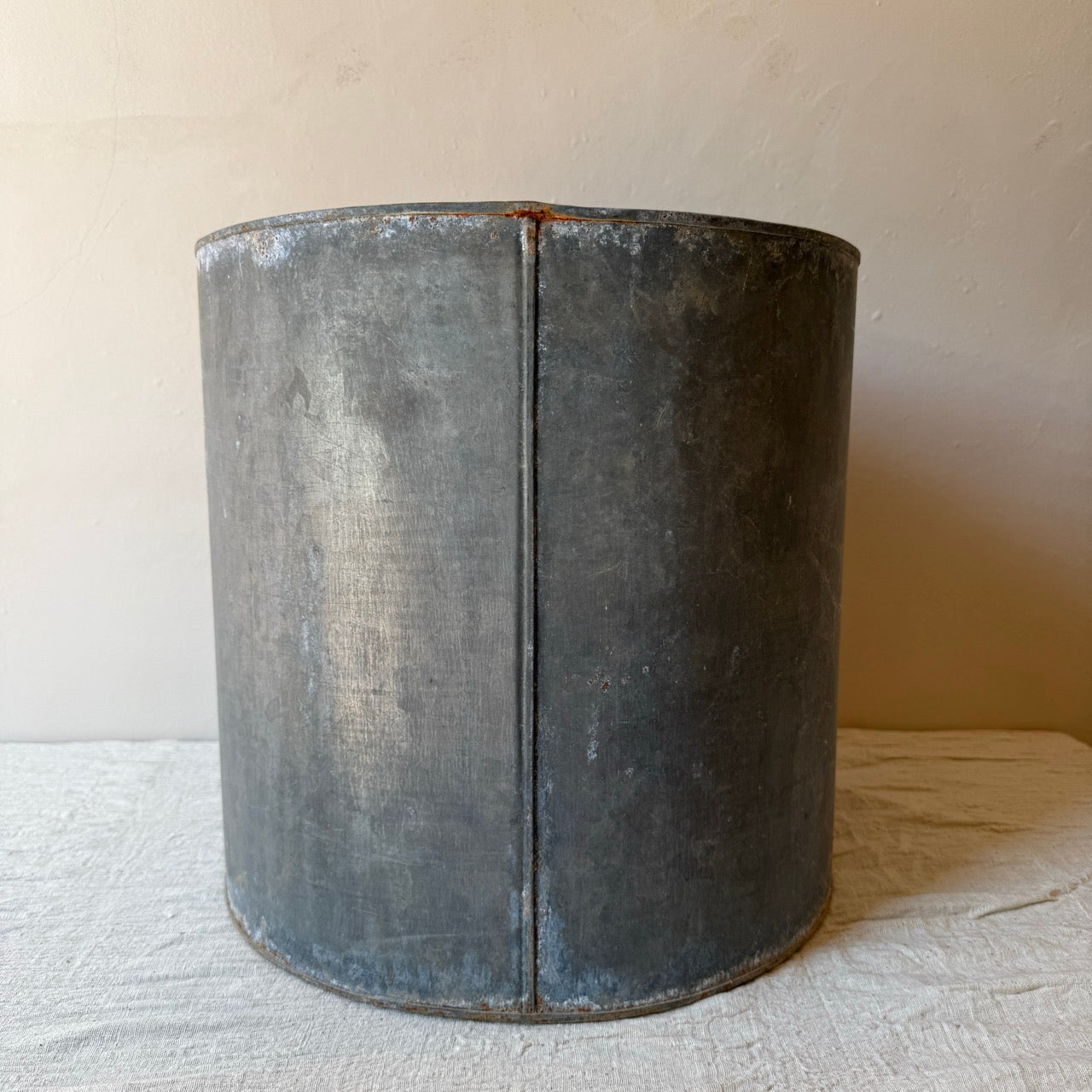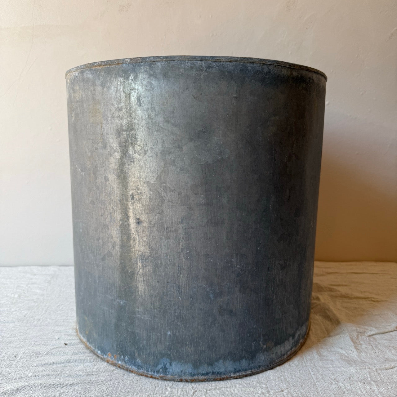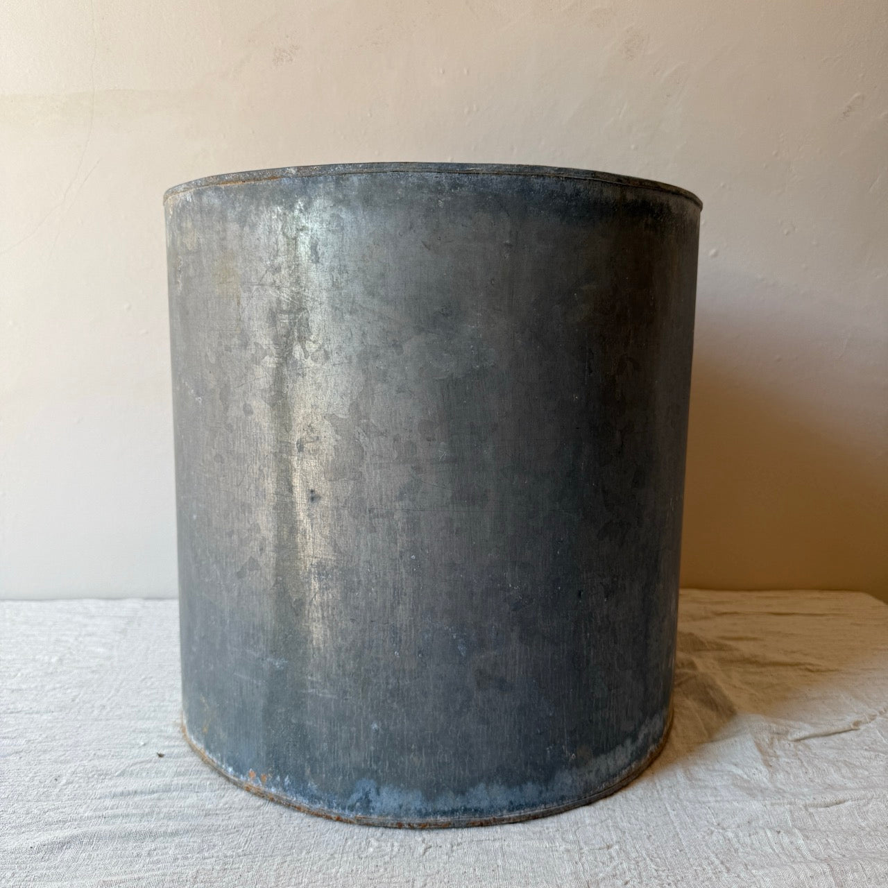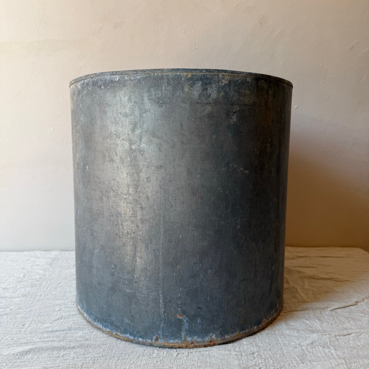 Antigua maceta de metal para planta. Ideal para decorar en un recibidor o en una terraza o jardín. Combínala con su tamaño pequeño.