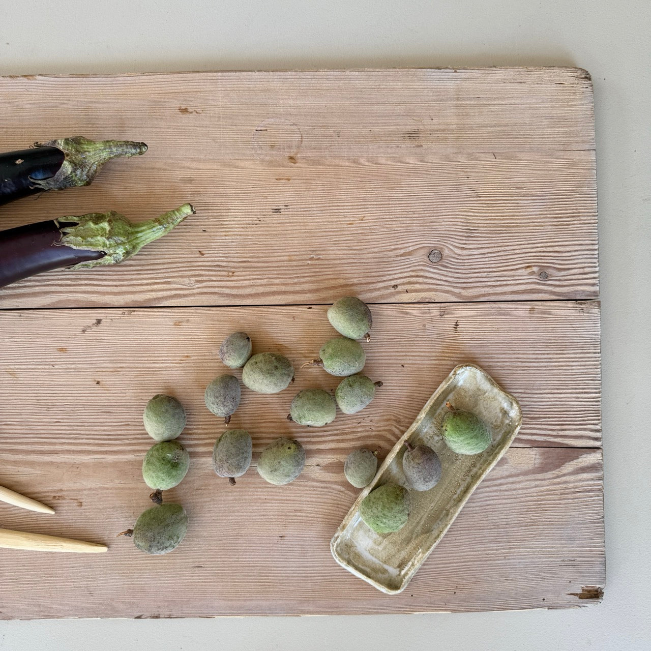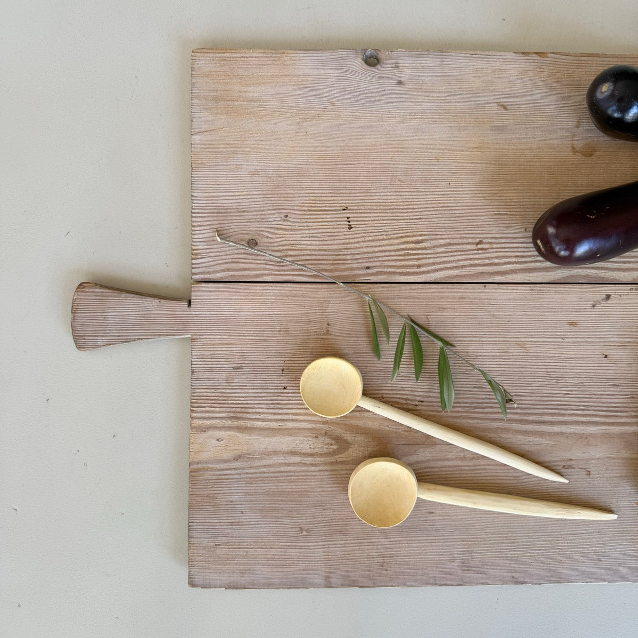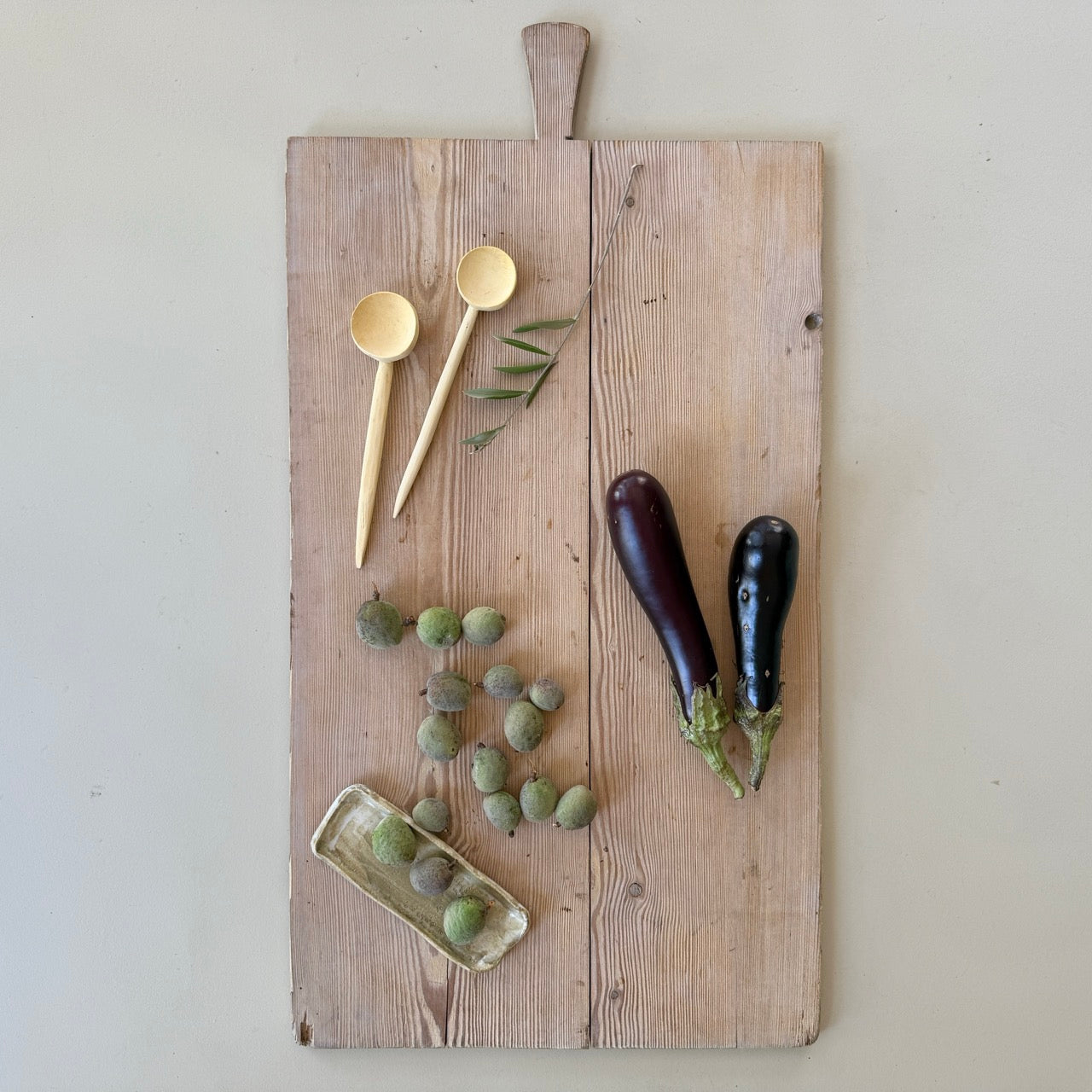 Antigua tabla de cortar de cocina de madera y forma rectangular. Perfecta para servir aperitivos en mesas de comedor e incluso como piezas decorativas con velas o ramitas.